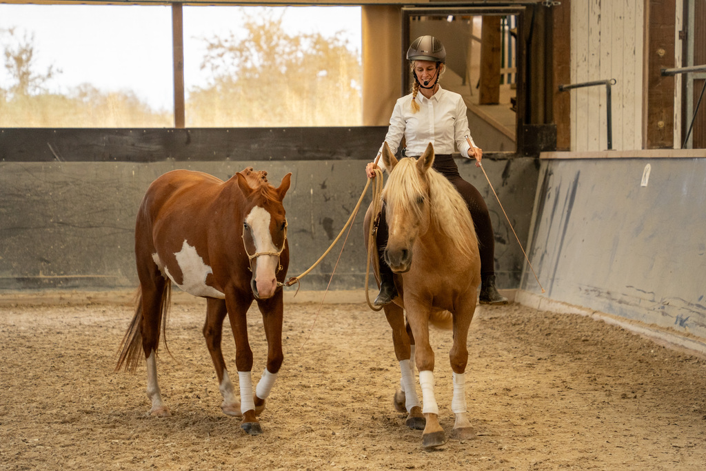In der Boden- und Seilarbeit arbeiten wir mit Knotenhalfter oder Kappzaum, Arbeitsseil oder Longe. Wir verbessern die grundlegende Kontrolle und Kommunikation vieler Basis-Lektionen, die wir für den täglichen Umgang und das Reiten brauchen. Dein Pferd wird durch diese Arbeit gut verstehen, Energie als natürliche Kommunikation anzunehmen und immer mehr Vertrauen und Respekt in deine Einwirkungen erlangen.